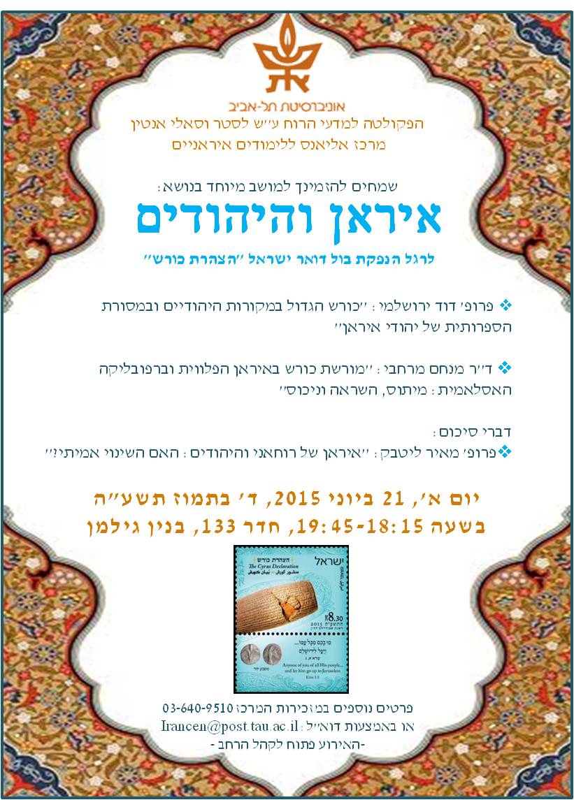 מושב מיוחד בנושא: איראן והיהודים, לרגל הנפקת בול דואר ישראל "הצהרת כורש"